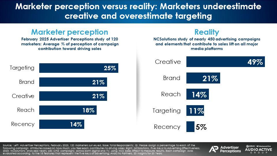 Advertiser Perceptions, the gold standard measurement of marketer and agency sentiment, reveals advertisers massively underestimate the sales effect of creative, and significantly overstate the impact of targeting: