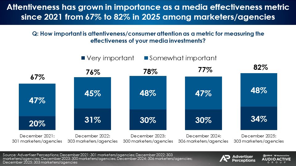 Advertiser Perceptions: 82% of marketers and media agencies say attentiveness is important as a metric for measuring the effectiveness of media investments