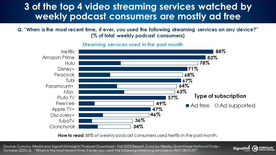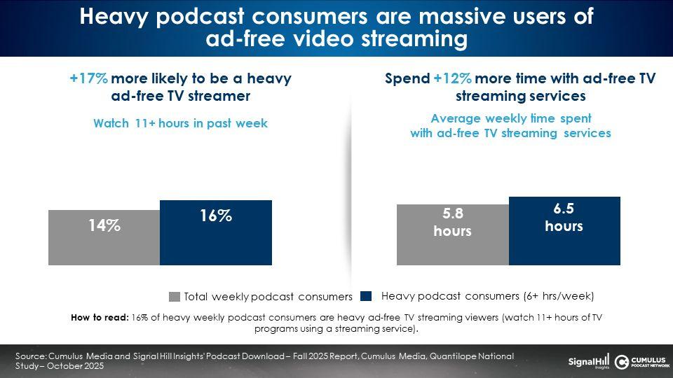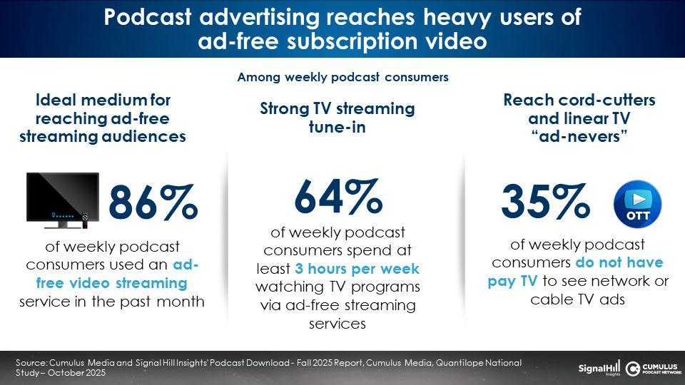 Podcast Advertising Is Ideal For Reaching The Ad-Free Subscription Video Audience; Audio Is Also Ideal For Video Streamers to Promote Their Brands, According To Cumulus Media And Signal Hill Insights’ Podcast Download Fall 2025 Report