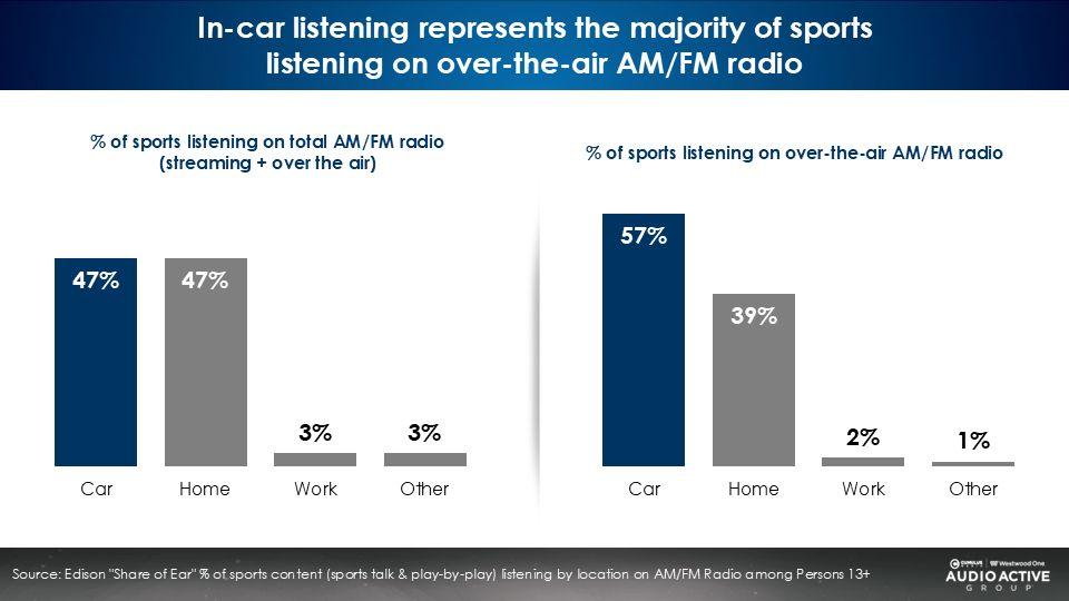 The car is the number one location of sports listening among over-the-air AM/FM radio listeners