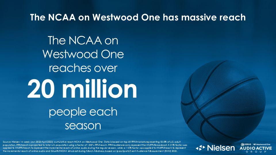Nielsen studies reveal Westwood One’s NCAA March Madness national broadcasts reach a massive 20 million Americans.