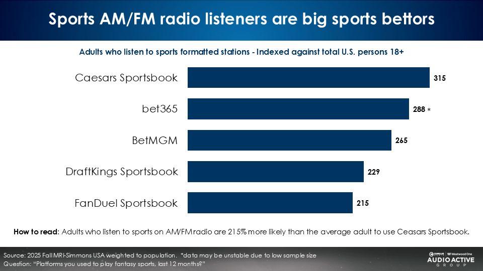 Not surprisingly, sports AM/FM radio generates exceptional levels of sports betting