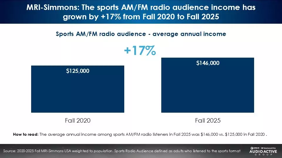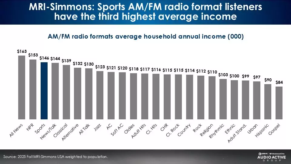 - Ranked third in income of twenty-four AM/FM radio formats, the sports format has seen household incomes grow 17% since 2020