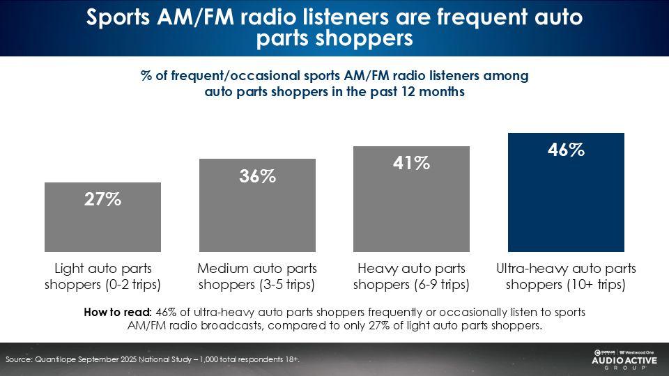 Sports AM/FM radio listeners are frequent auto parts shoppers.