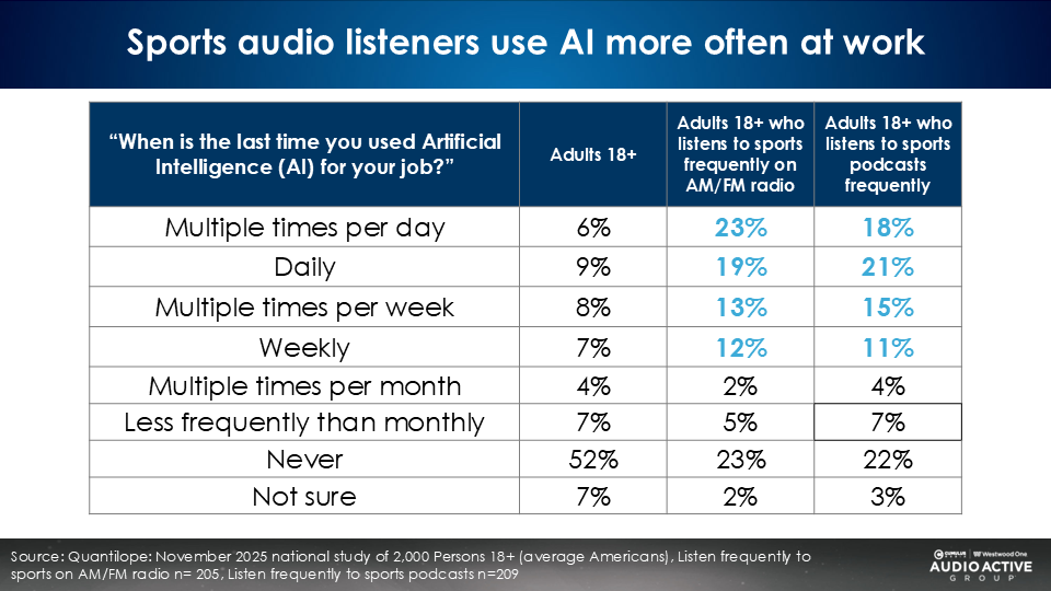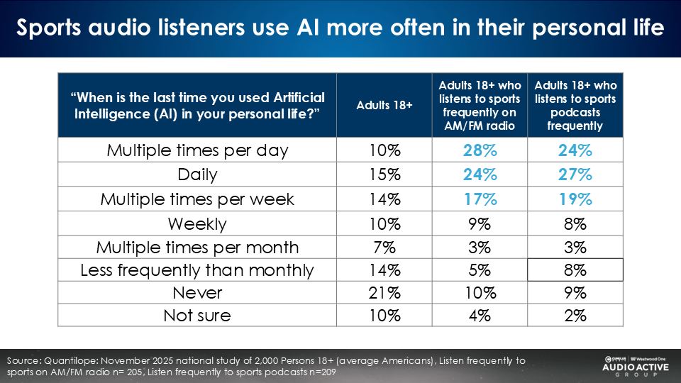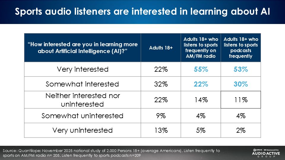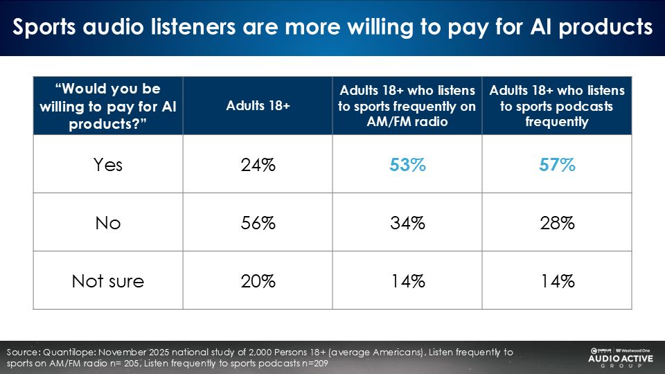 When it comes to AI, the sports AM/FM radio audience is much more engaged and willing to pay for AI services