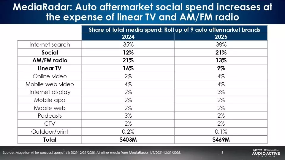 Social grows to the leading media platform for auto aftermarket spend at the expense of TV and AM/FM radio